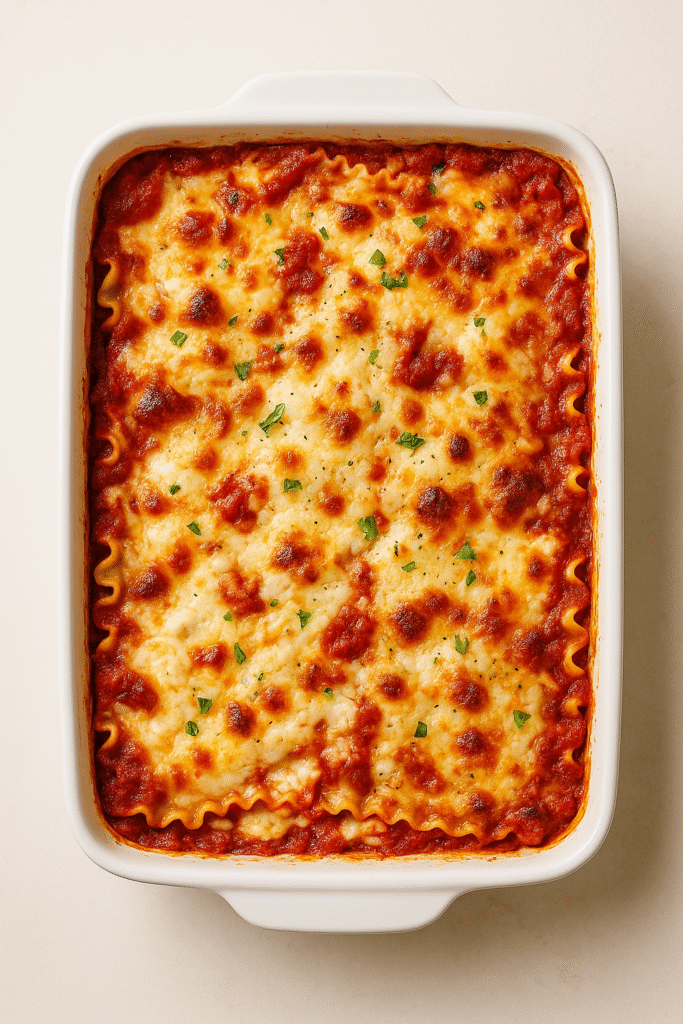 3. Repeat 3–4 layers; finish with sauce + mozz.